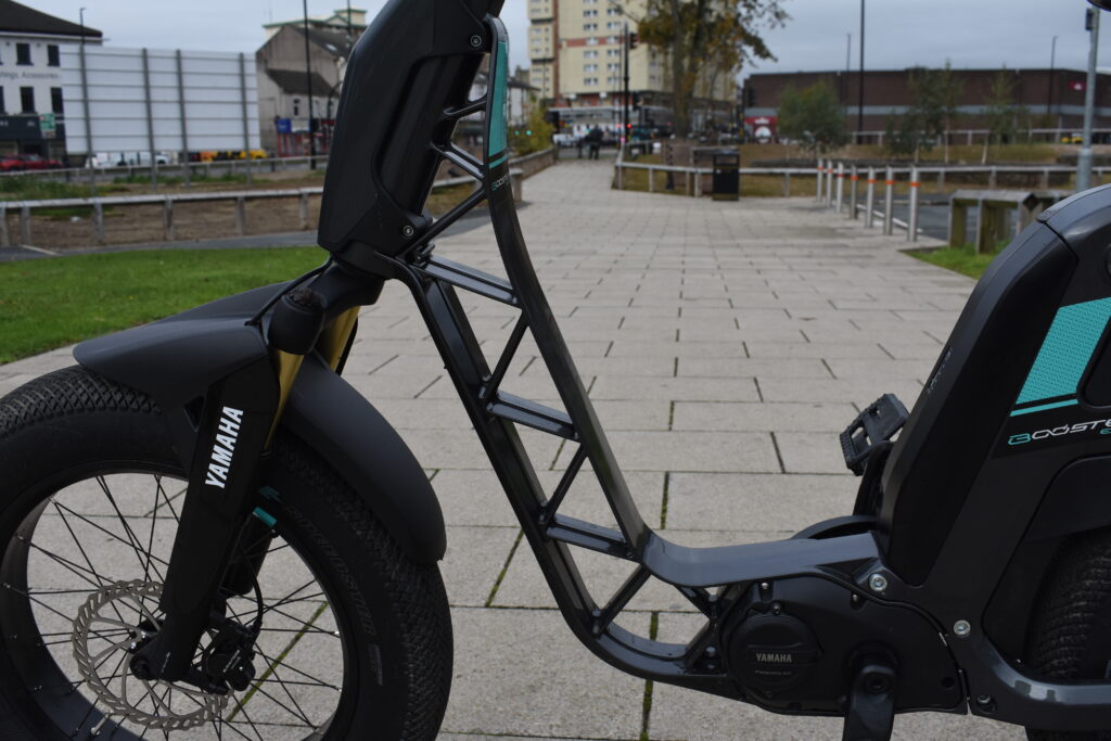 Up my standard extended hill climb, it was a little off the pace of Bosch Performance Line e-bikes I’ve tried, even though the quoted 75Nm motor of the Bosch motor is exactly the same torque (on paper at least) as the Yamaha PW-S2 mid-drive fitted to the Booster Easy.