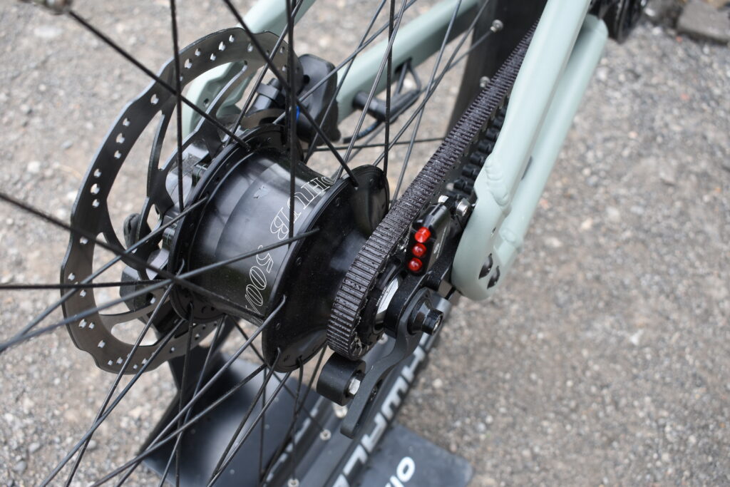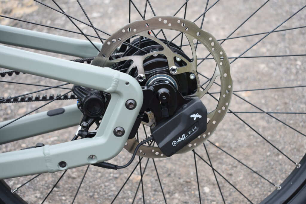 The Rohloff’s 526% percent gear range should prove enough for just about any task on any incline you would want to throw at it, and so it proved in testing. I did have a few niggles with it though. More a note than a complaint is the fact you do need to coordinate changing with your pedal pressure more noticeably than with derailleurs, otherwise some graunching may occur. There was in any case some noise in some of the gears (I actually thought it was an uncharacteristically noisy motor at first), but this is a known feature of Rohloffs and they should wear in over time.
